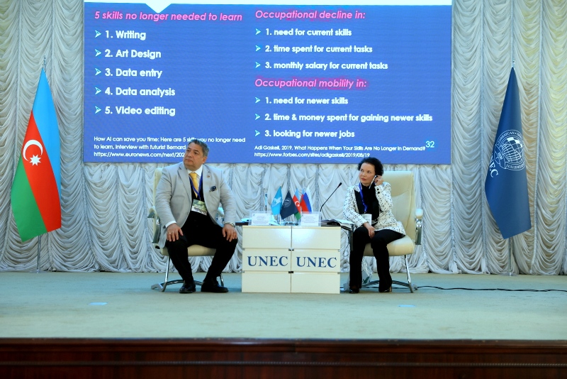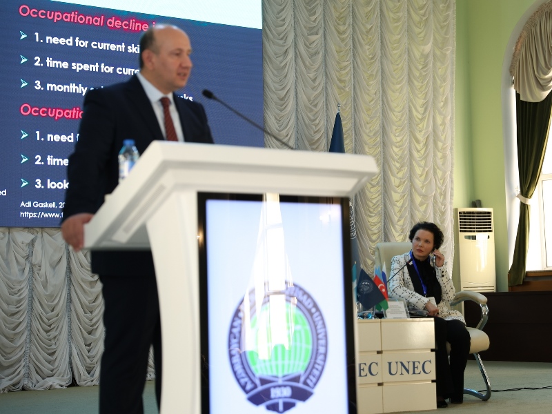The conference continued with panel discussions moderated by Professor Zahid Mammadov, Director of UNEC’s Department for Scientific Activities and Management and Head of the UNEC Eurasia International Research Center. Experts from Azerbaijan, Turkey, Russia, and Germany discussed green technologies, the role of entrepreneurs in the green economy, partnerships among educational institutions, business, and government for sustainable development, and green financing.