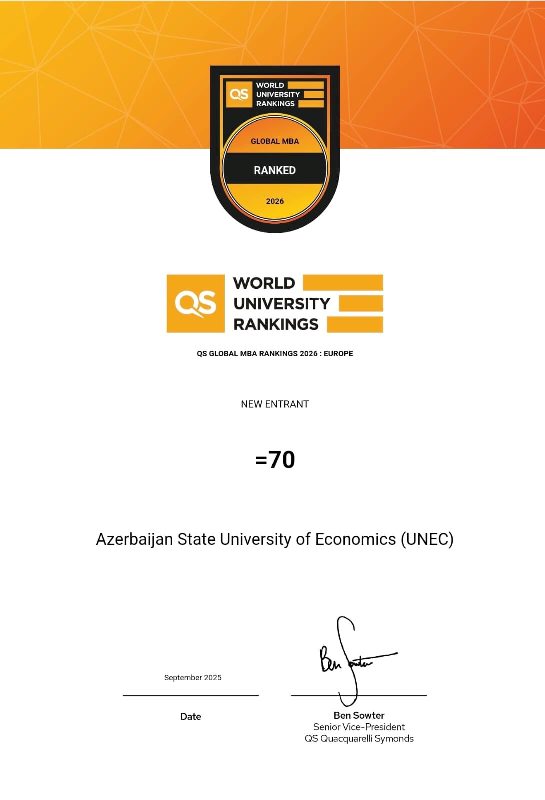 İlk dəfə olaraq, dünyanın aparıcı universitetlərinin yer aldığı “QS MBA Rankings 2026” reytinqinə daxil olub.