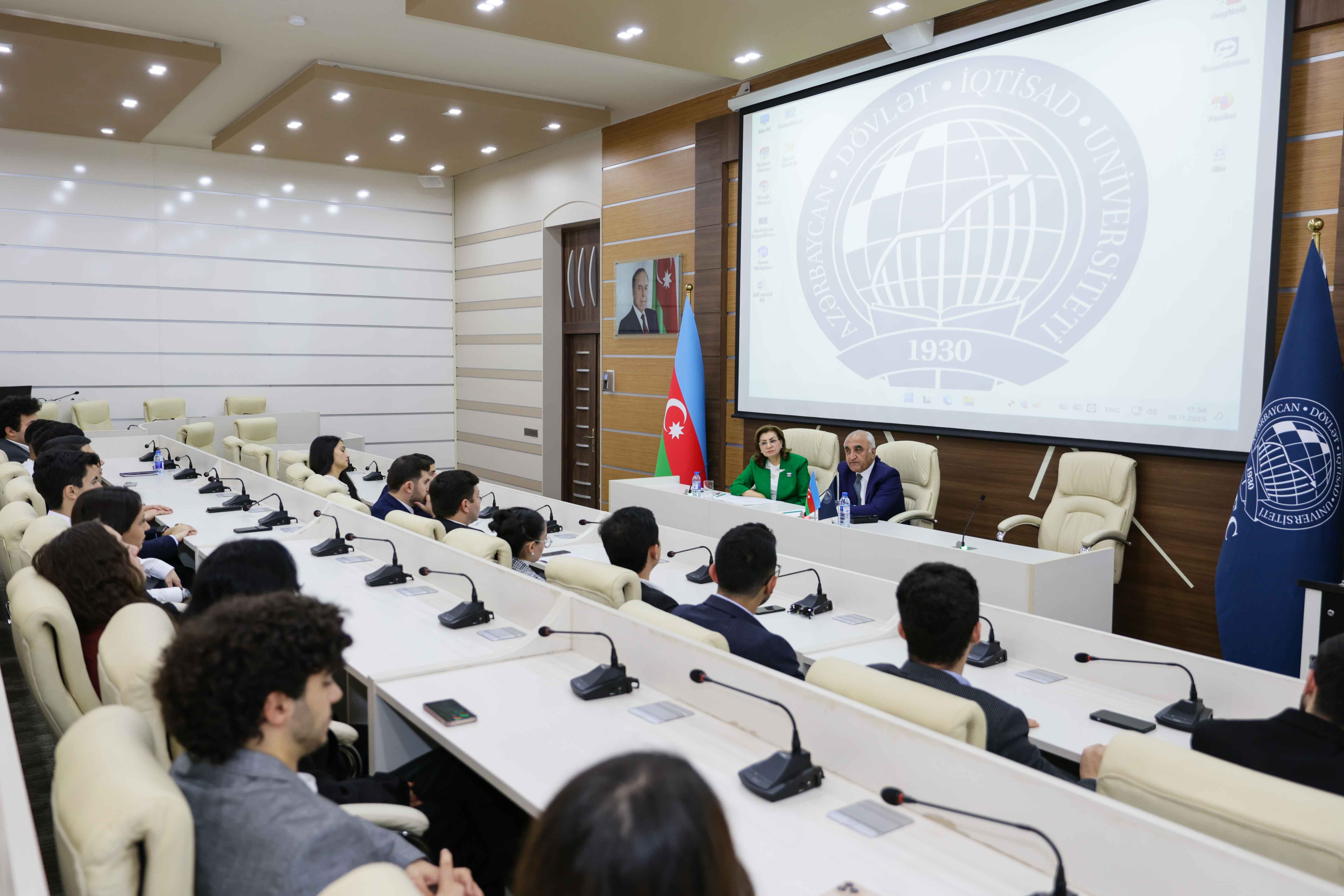 Görüş zamanı professor Ədalət Muradov tələbələrin universitetin idarəetmə prosesində oynadığı önəmli roldan danışıb. O, “UNEC 100 İnkişaf Strategiyası”nın əsas hədəflərindən birinin tələbə təşkilatlarının fəaliyyətinin gücləndirilməsi və sayının artırılması olduğunu qeyd edib.