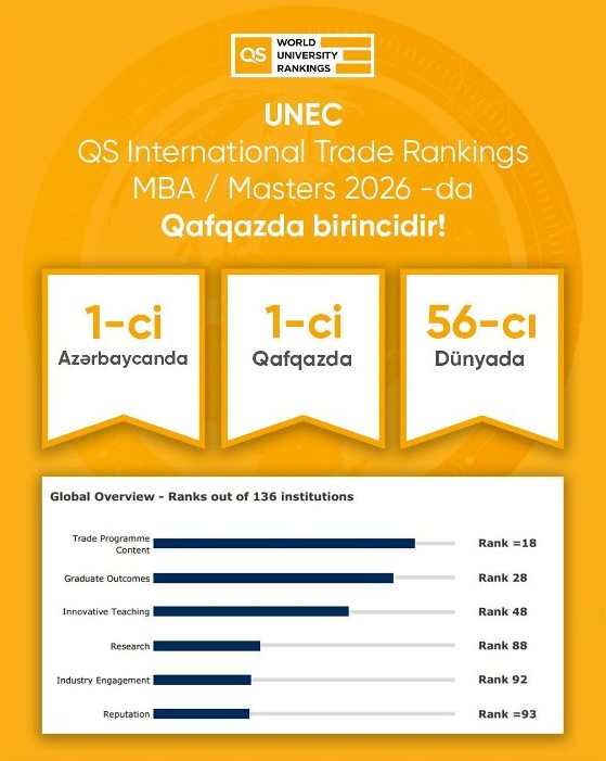 According to the “Trade Program Content” indicator, UNEC surpassed leading universities such as the London School of Economics (LSE) and the University of Warwick, securing a place among the world’s top 20 universities.
