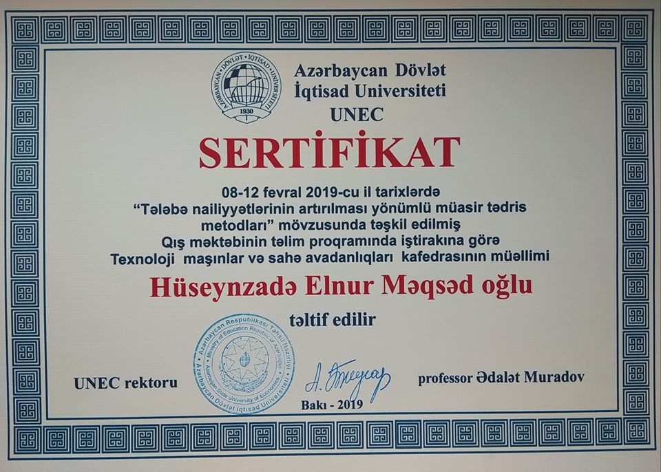 “İqtisadi və texnoloji elmlər” kafedrasının baş müəllimi
