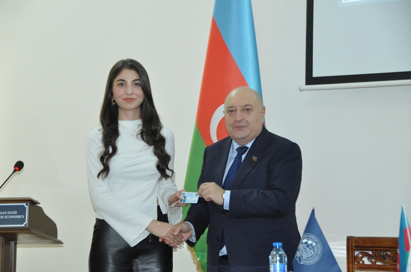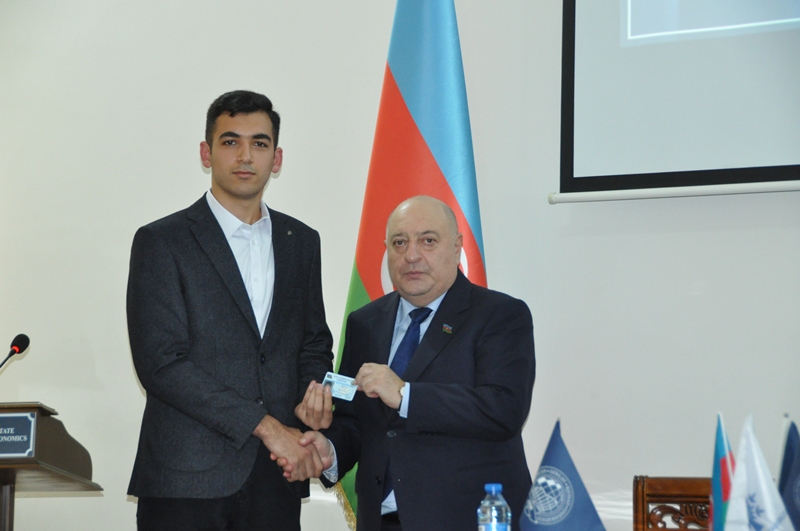В конце студентам UNEC, ставшим новыми членами партии «Ени Азербайджан», были вручены билеты партии «Ени Азербайджан».